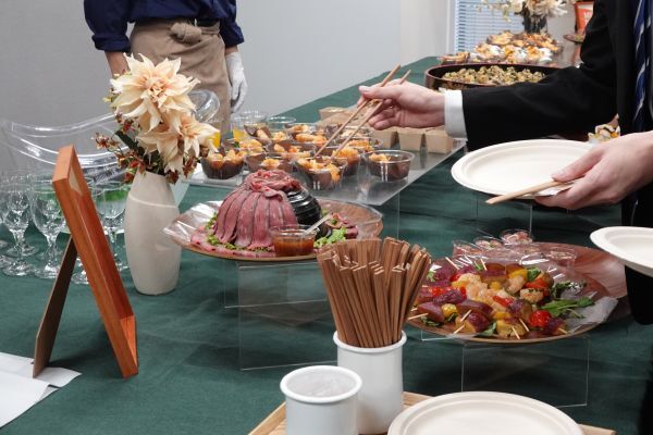 【本日】26卒向け内定式開催のお知らせ 2025/10/01 内定式(式典) 来年2026年度に入社予定している内定者の方20名全員にお集まり頂きました。 この後はささやかながら懇親会も開催いたします。 懇親会(ビュッフェ・ケータリング) 皆さん、おなか一杯召し上がれ 懇親会には忙しい中先輩社員も10名以上に集まって頂き、各内定者との懇親がかなったかと思います。